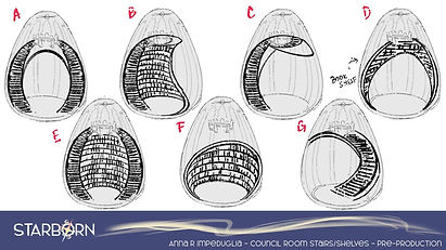 Then I was allowed the creative freedom to create props from scratch. The goal was to design things that could potentially fill the council room. I explored both decoration and function while brainstorming for these props, and you can see that a number of them made it into the final film.
